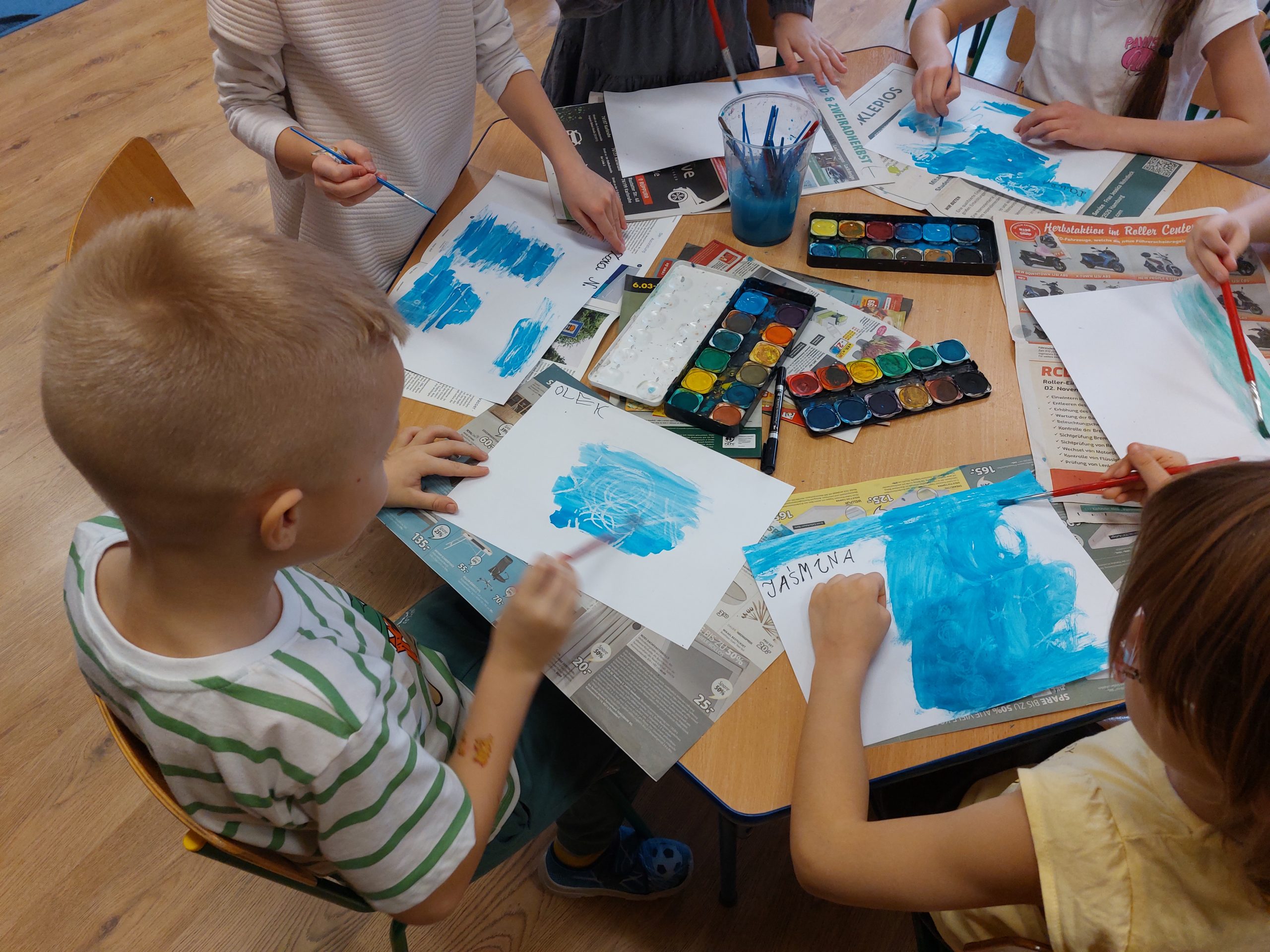 Dodatkową atrakcją było rysowanie świeczką – po pomalowaniu pracy farbką – białe dzieła wyłaniały się spod farby.