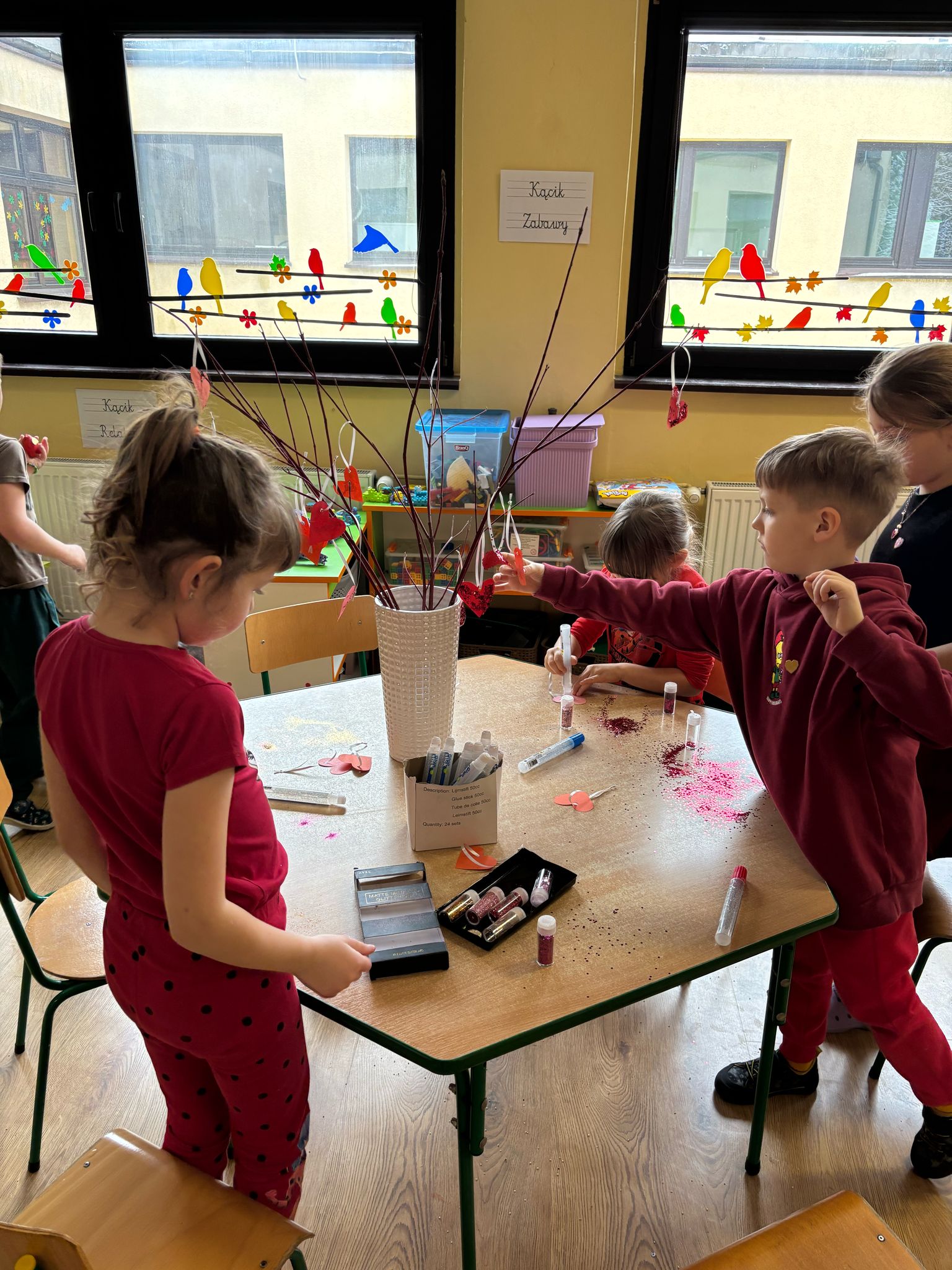 Walentynki to radosne i kolorowe święto, które i w tym roku było celebrowane w naszym przedszkolu. Takie dni mają na celu promowanie miłości, przyjaźni i życzliwości wśród maluchów. Nie zabrakło zabaw tematycznych, wspólnego malowania serduszek czy tańców w rytmie walentynkowych piosenek. Atmosfera była bardzo przyjazna i pełna uśmiechów. Takie święto pozwala dzieciom wyrażać emocje i uczyć się wartości takich jak współpraca, empatia i szacunek dla innych.