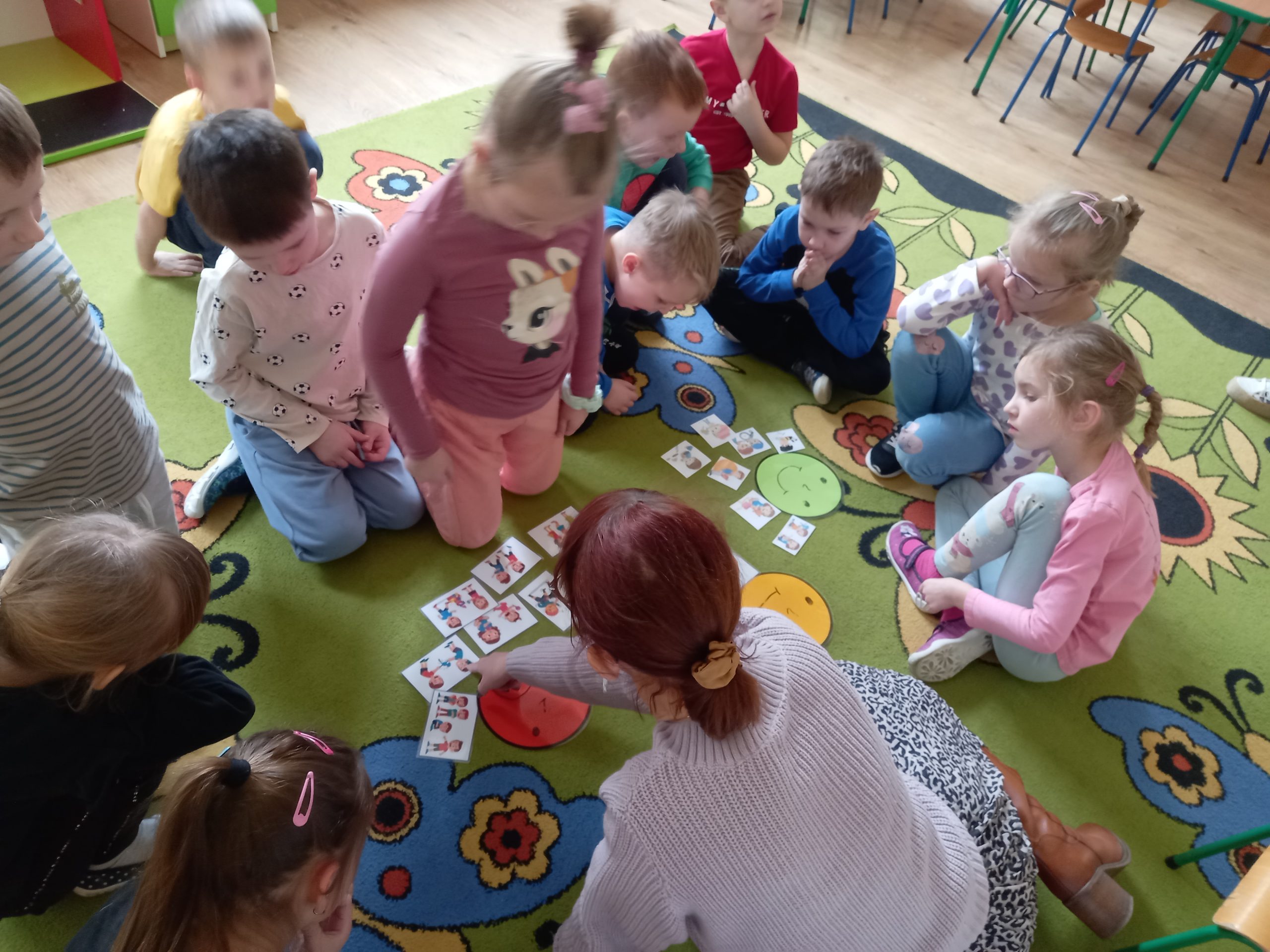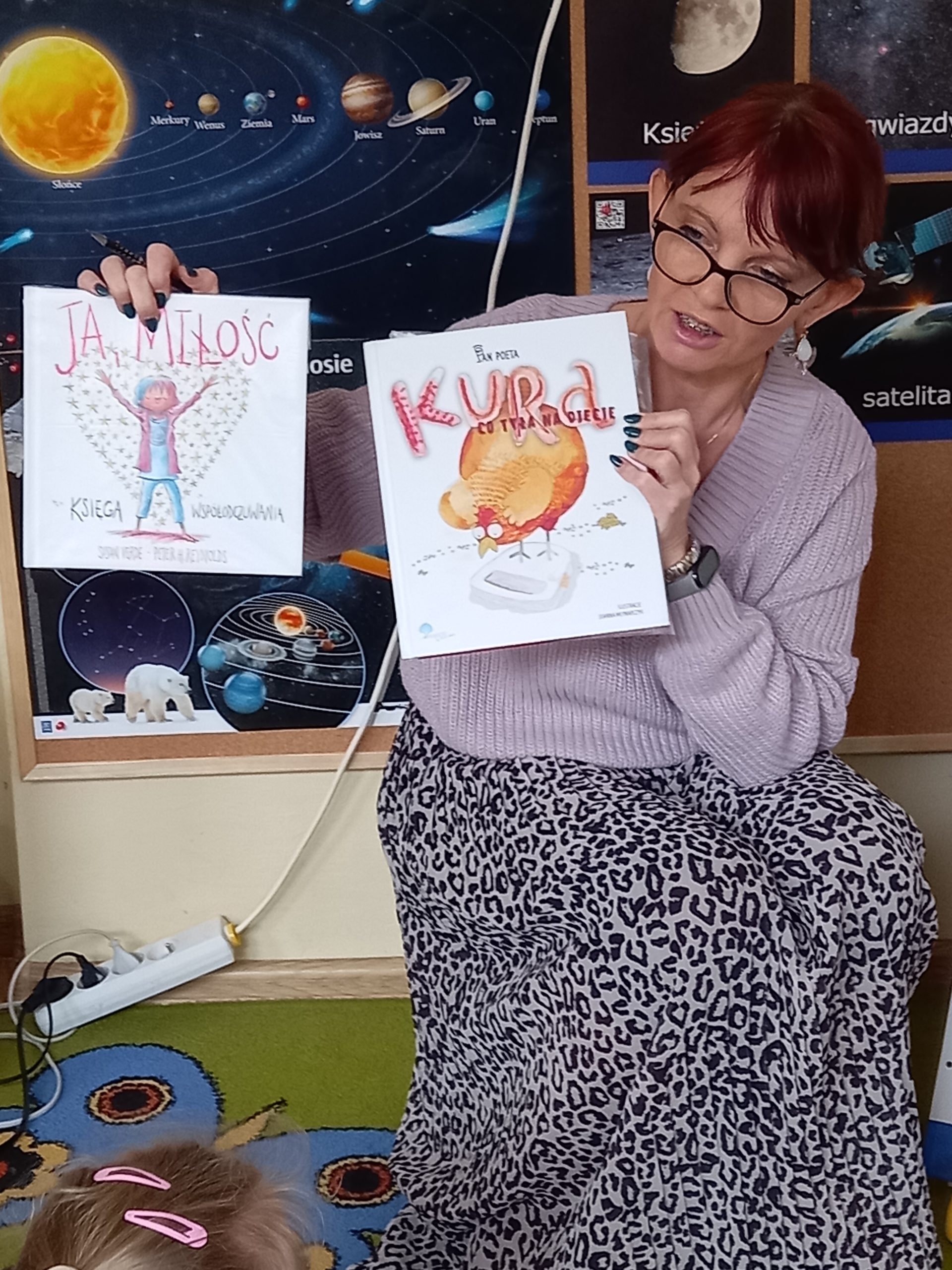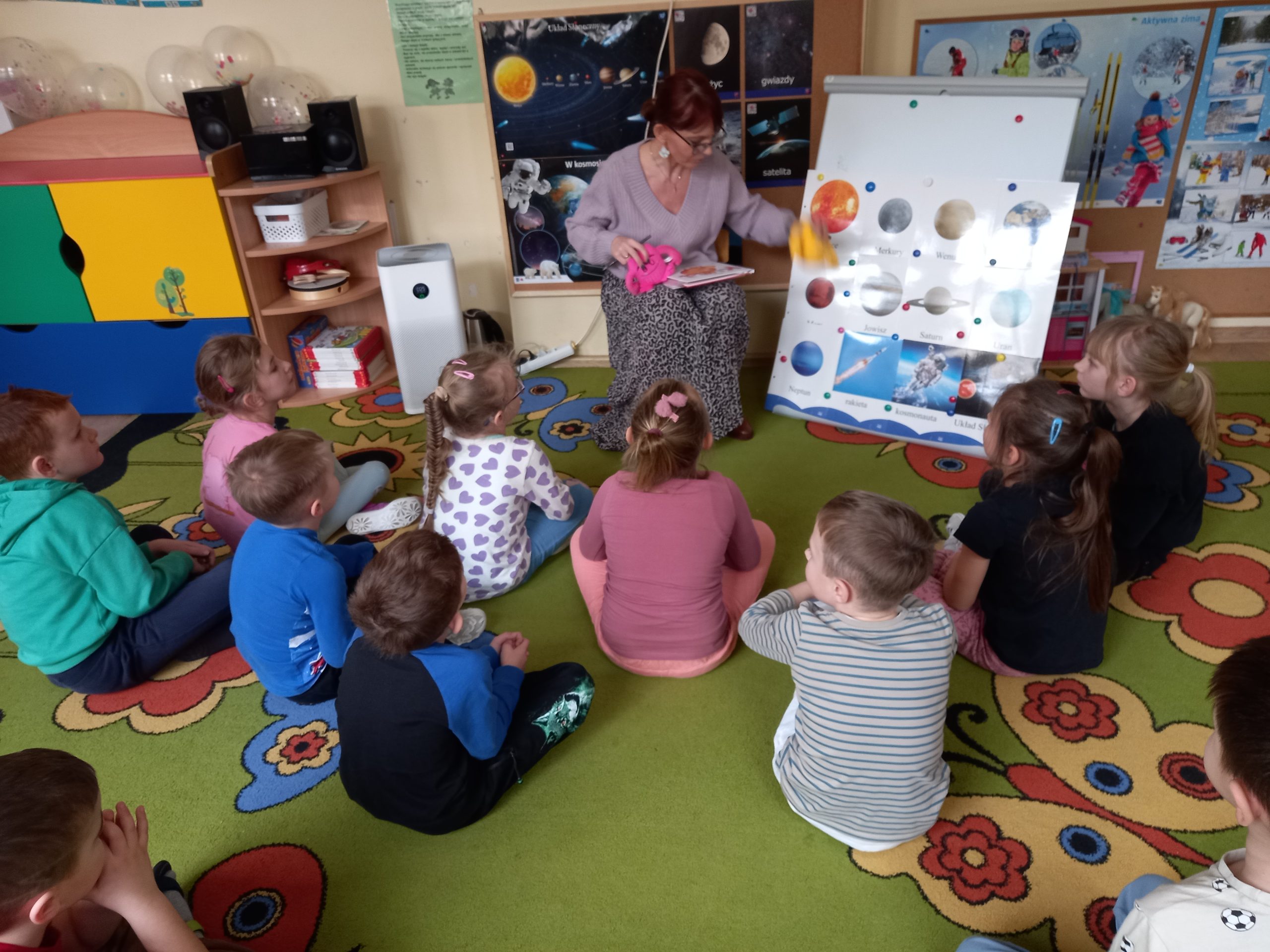 Spotkanie dzieci z grupy VIII z bibliotekarką w ramach Międzynarodowego Projektu Czytelniczego: ,,Magiczna moc bajek”.