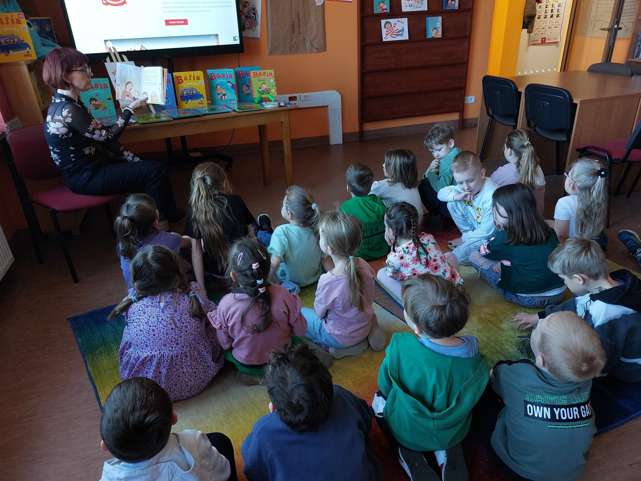 Nasza grupa w tym roku szkolnym 2024/2025 dzięki współpracy z Książnicą Pedagogiczną bierze udział w cyklu czytelniczym o nazwie „Nasze problemy małe i duże – spotkania z „Basią”.