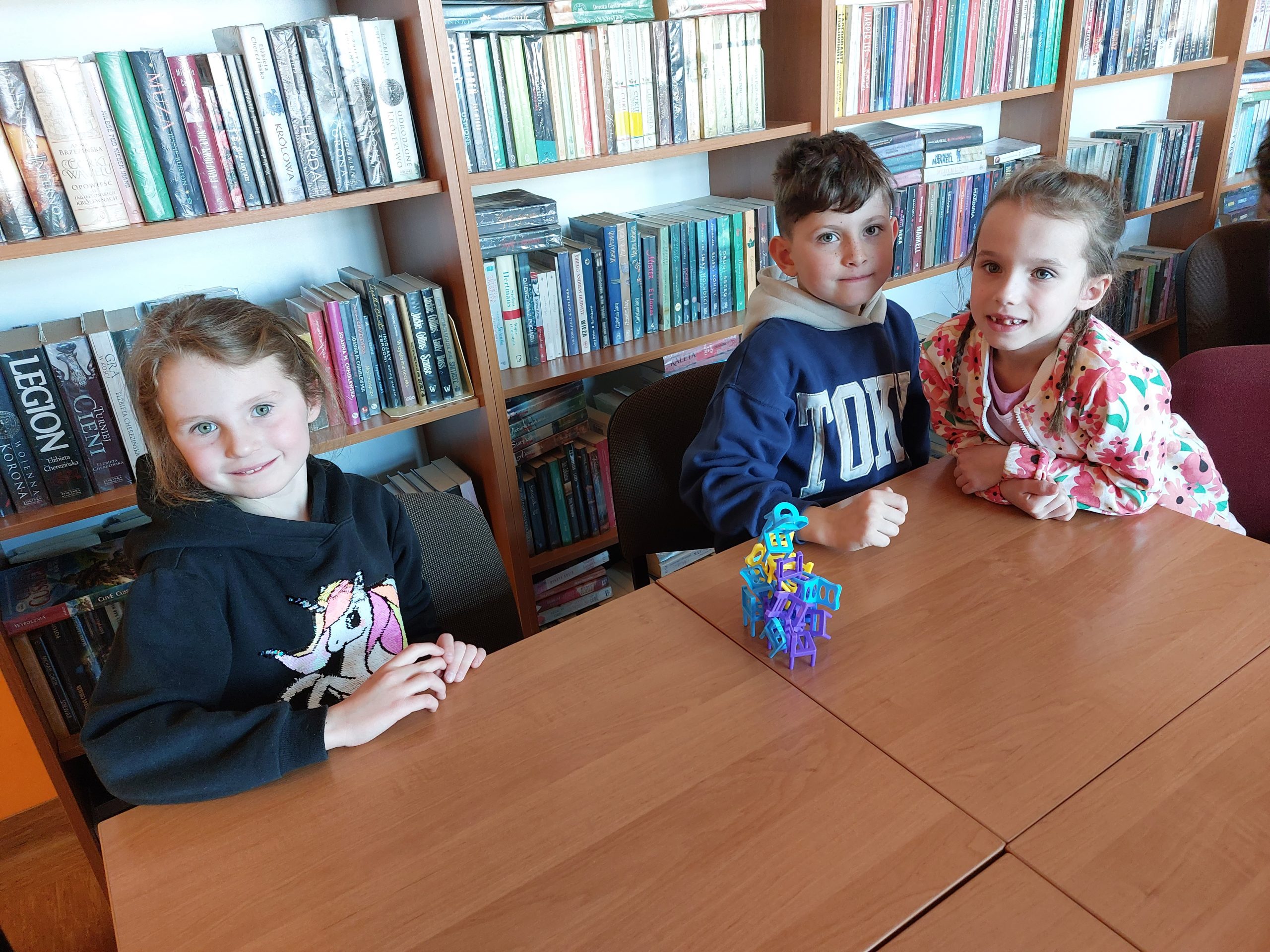 Dzieci miały za zadanie ustawić wieże z krzesełek oraz wrzucać kule z gazet do dwóch koszy. Współpraca była bardzo dobra. Dzieci rozmawiały ze sobą – dyskutowały o tym jak wykonać zadanie najlepiej.