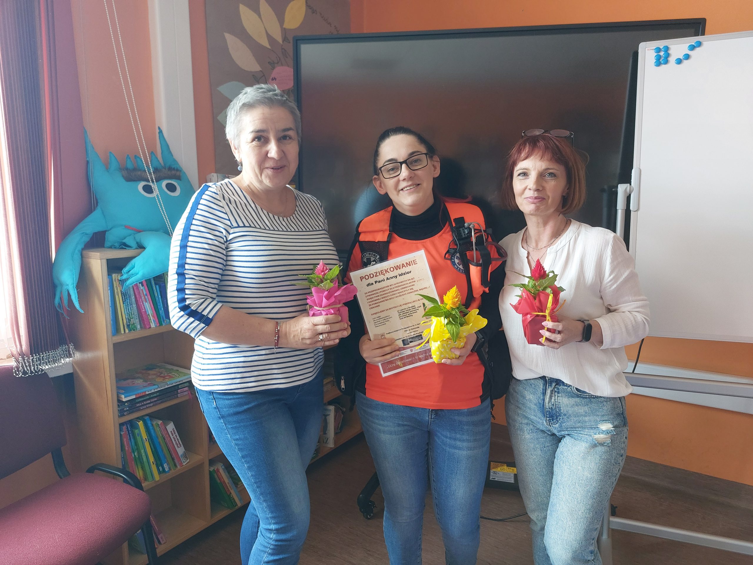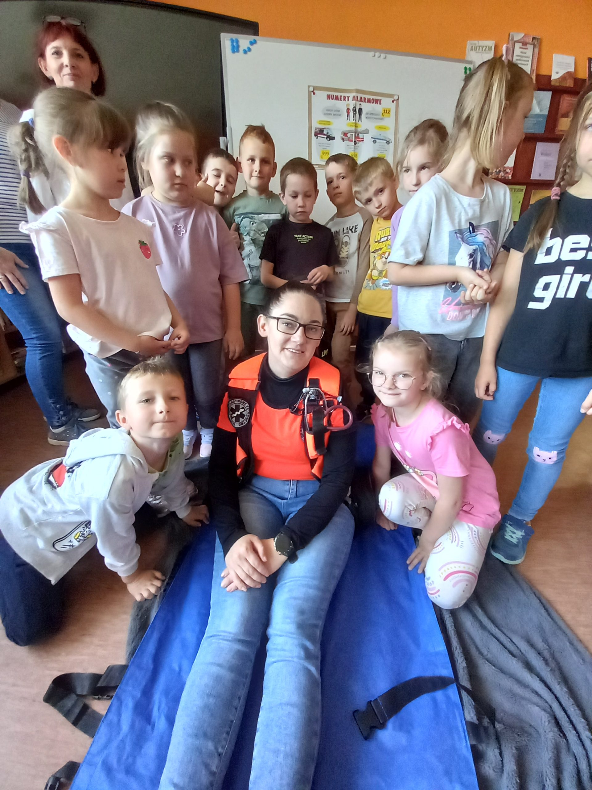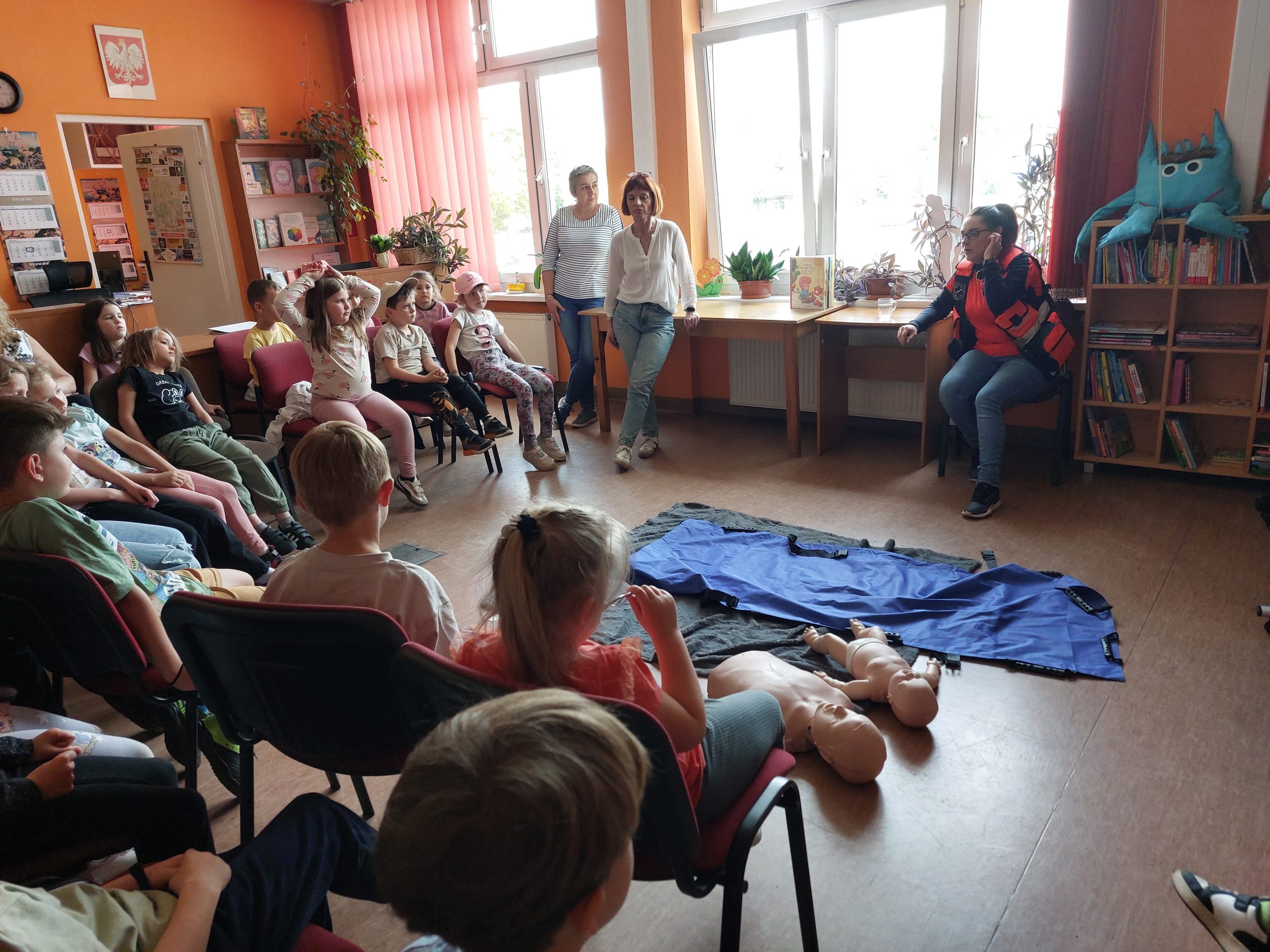 Pani Anna Idzior (ratownik medyczny) w przyjazny sposób przeprowadziła z dziećmi zajęcia na temat bezpieczeństwa i pierwszej pomocy.