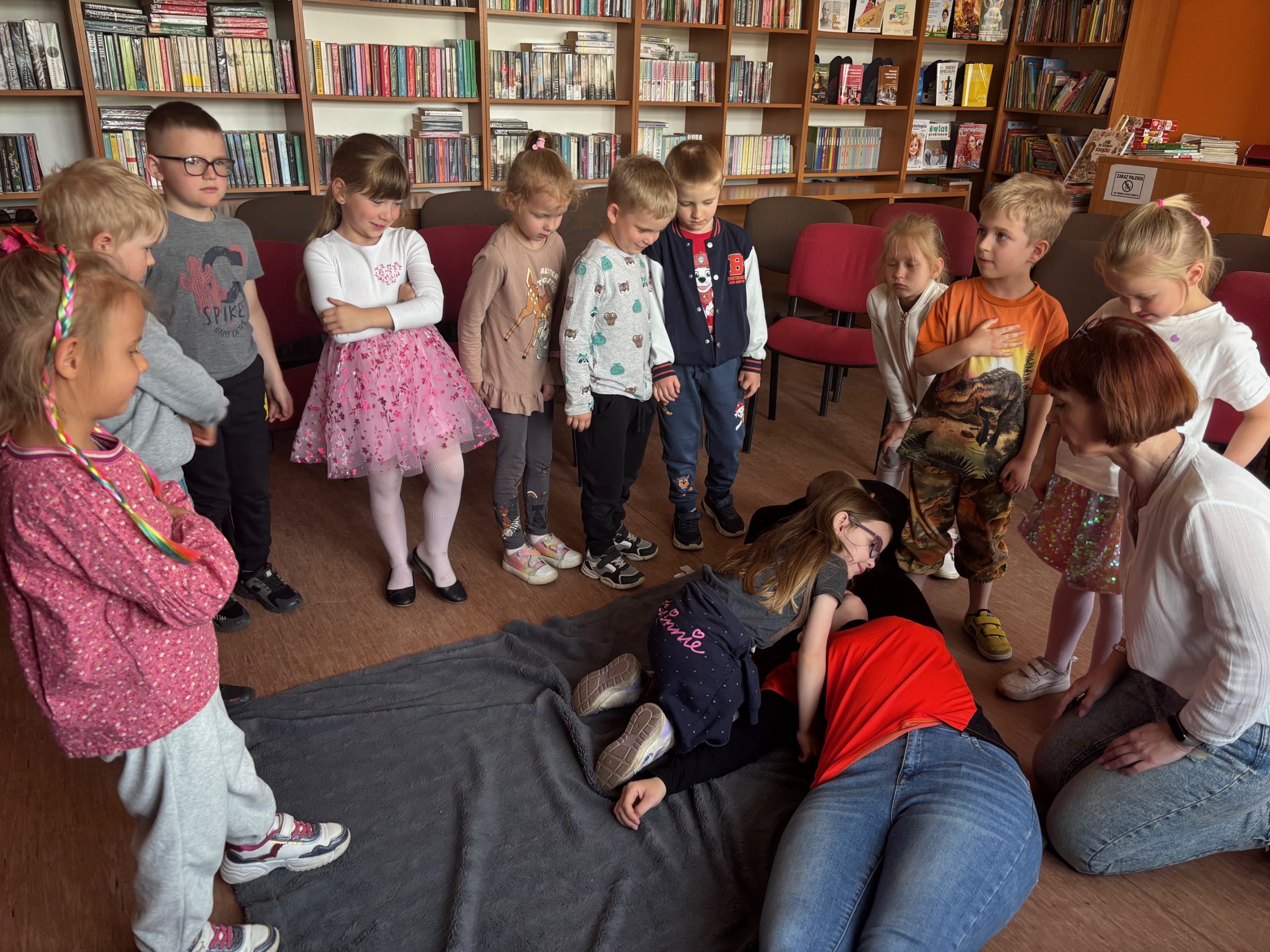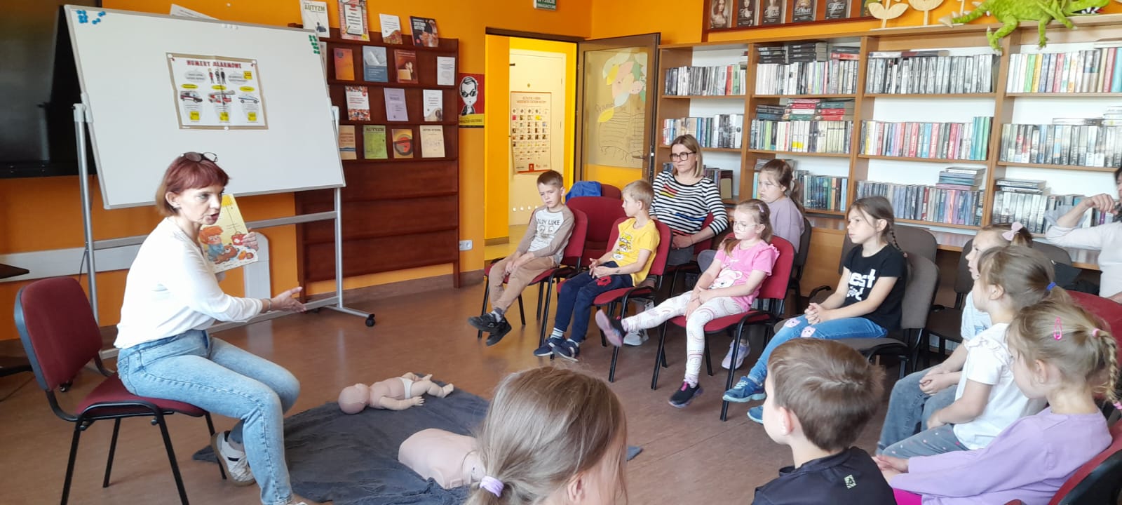 W siedzibie Książnicy odbyły się zajęcia praktyczne połączone z zajęciami czytelniczym w oparciu o książkę „Łukasz ratuje misia czyli jak udzielać pierwszej pomocy” autorstwa Izabeli Michty.