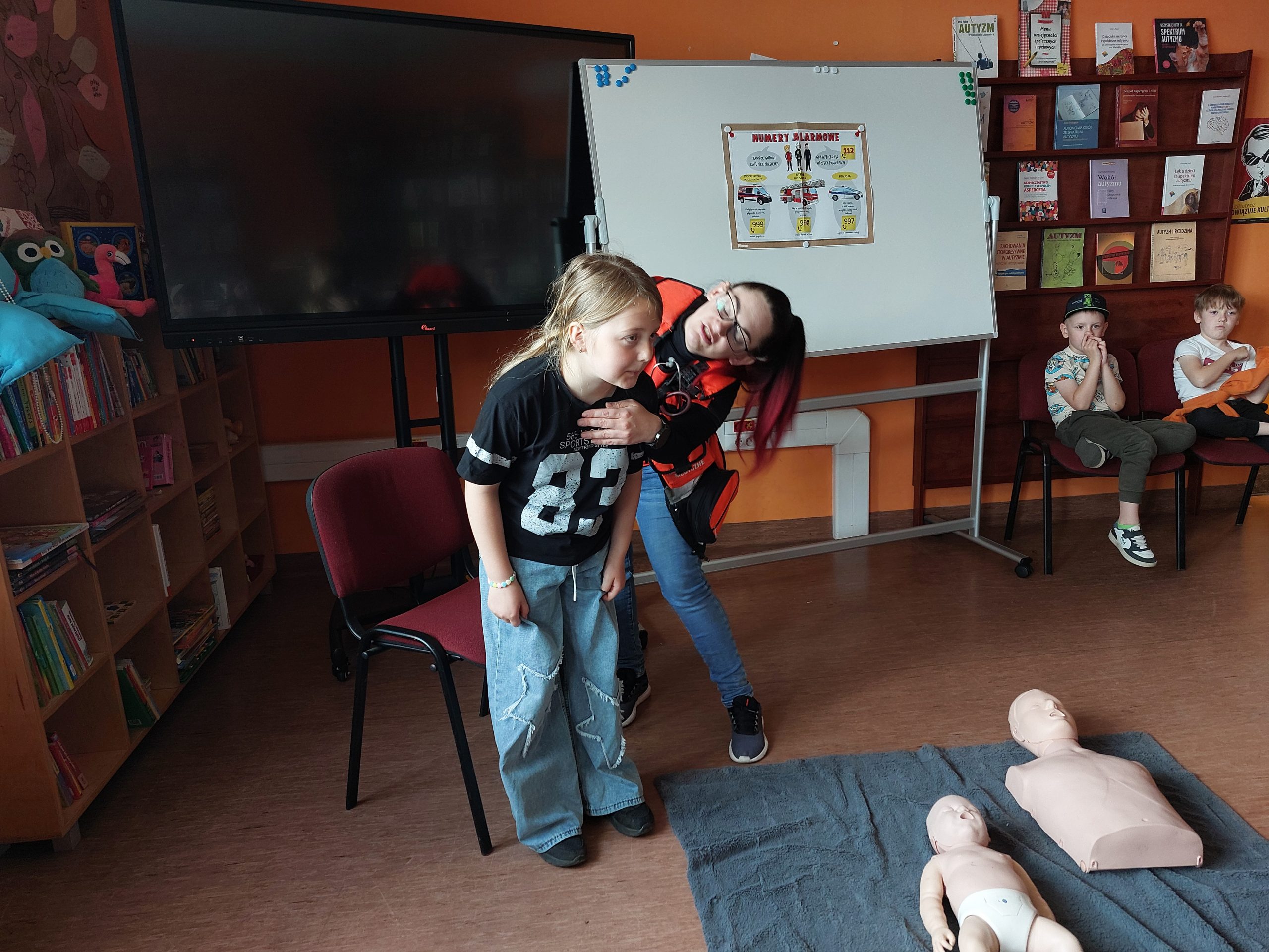 Dzieci miały okazję wysłuchać informacji na temat udzielania pierwszej pomocy. Uczyły się w jaki sposób można komuś pomóc, zanim przyjedzie pogotowie ratunkowe.