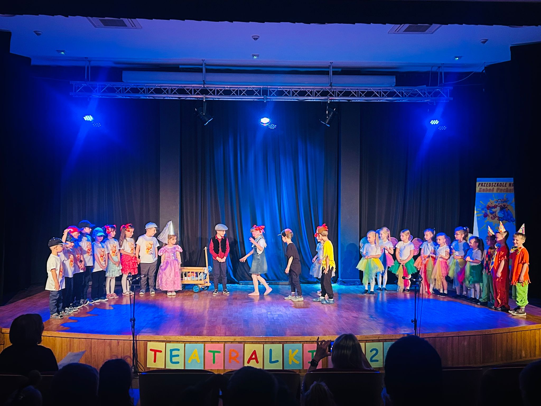W dniach 15 i 16 maja dzieci z przedszkoli w Ostrowie Wielkopolskim miały szansę zaprezentować swoje talenty aktorskie podczas XVI edycji Przeglądu Teatrów Przedszkolnych „Teatralki 2025”. Jak co roku wydarzenie zostało przygotowane przez Przedszkole nr 10 Kubuś Puchatek we współpracy z Młodzieżowym Domem Kultury. W tegorocznym przeglądzie wystąpiło 10 przedszkoli. Naszą placówkę reprezentowała grupa Tygrysków z przedstawieniem pt. „Bajka o szczęściu”. Młodzi artyści z ogromnym zaangażowaniem i naturalnością odgrywali swoje role, a każdy spektakl dostarczał widzom wielu emocji – radości, śmiechu, a także wzruszeń. Wszystkie dzieci biorące udział w wydarzeniu otrzymały pamiątkowe dyplomy i nagrody.