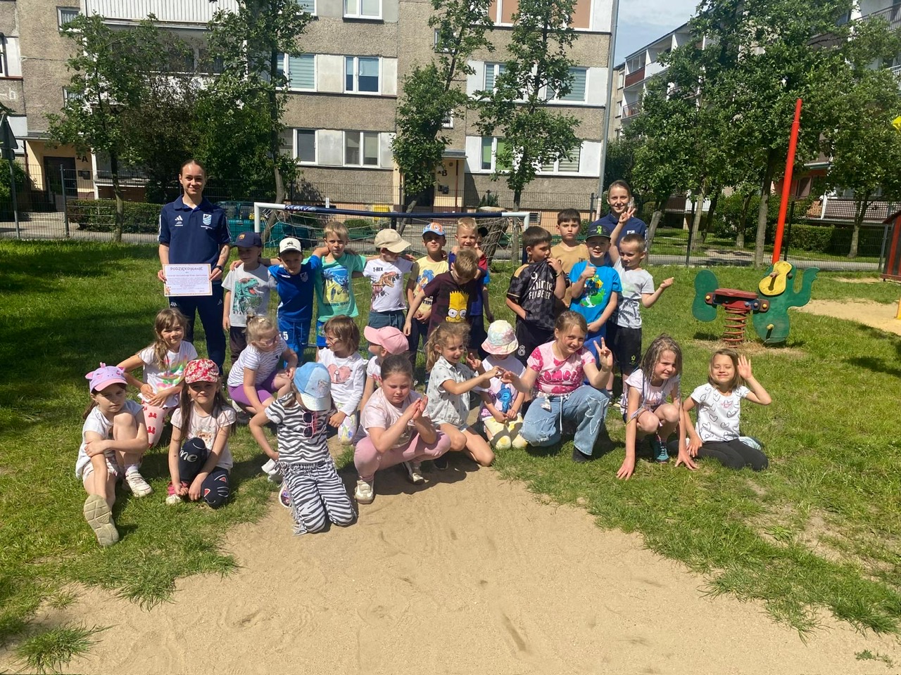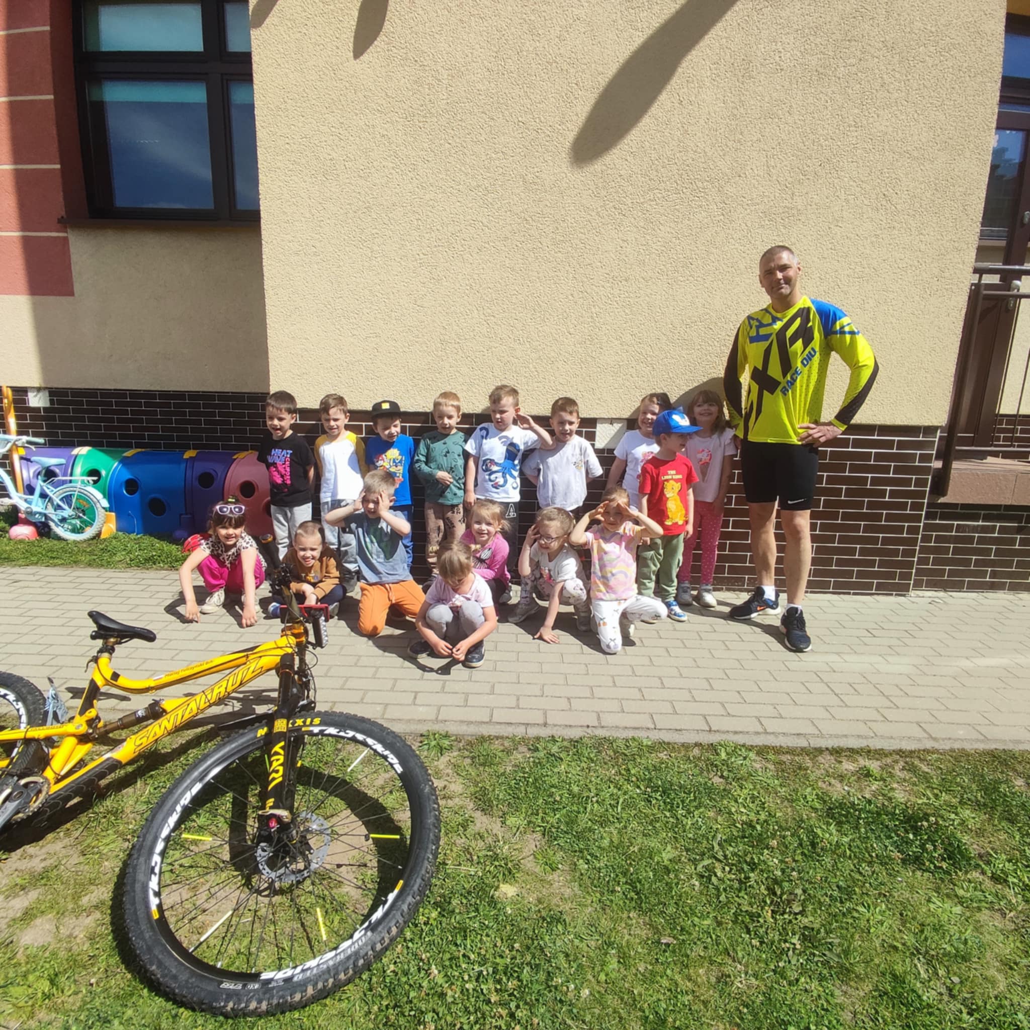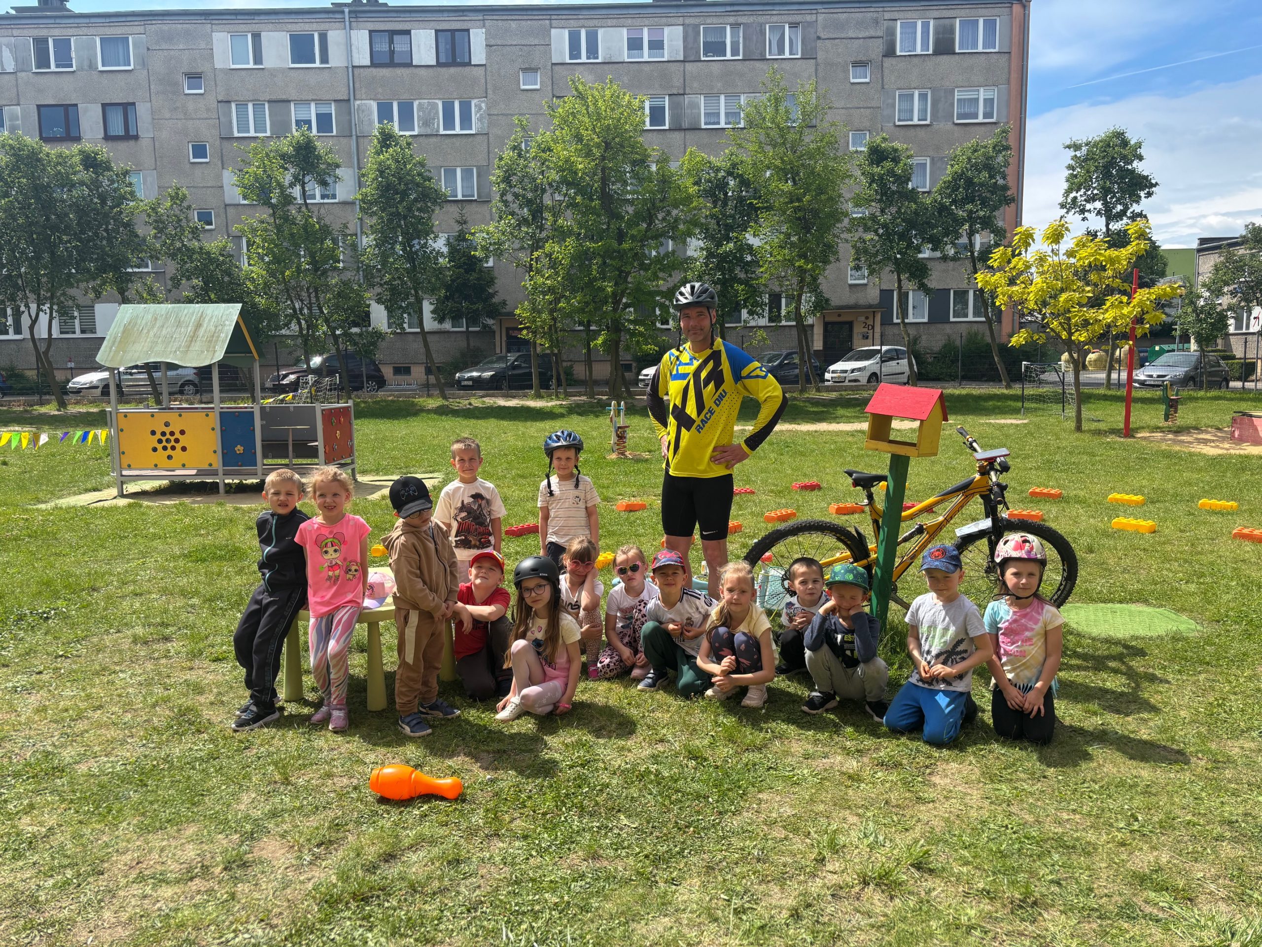 28 maja tj. w środę odwiedził nas Tata Alicji F. z Grupy Pszczółek. Pan Maciej jest pasjonatem sportu i jazdy rowerem. Zaprezentował dzieciom strój kolarski, a także pokazał swój rower. Dzieci dowiedziały się jak ważne jest aby zawsze mieć założony kask chroniący głowę, a także ile radości czerpiemy z jazdy rowerem. To okazja do ruchu, relaksu, a także przebywania na świeżym powietrzu. Tata Alicji przygotował dla dzieci tor, który pokonywały na rowerku biegowym. To były ciekawe i inspirujące zajęcia. Bardzo dziękujemy Panu Maciejowi za zaangażowanie i udział w rozwijaniu wśród naszych przedszkolaków zdrowego stylu życia.