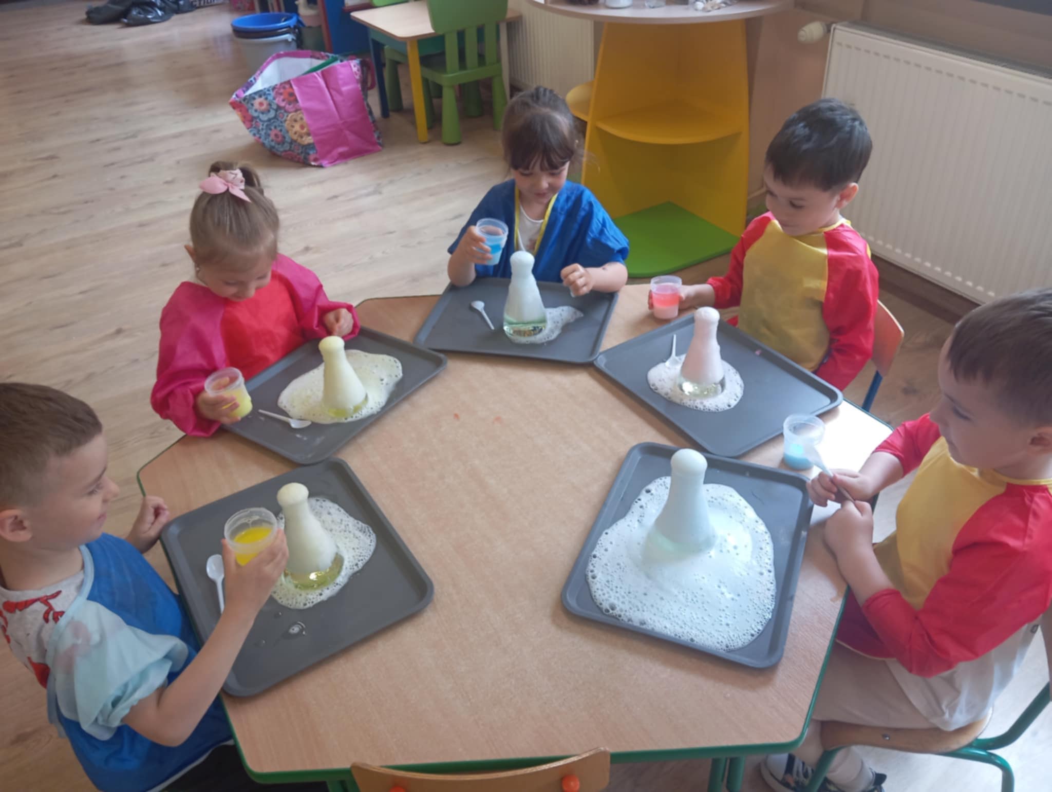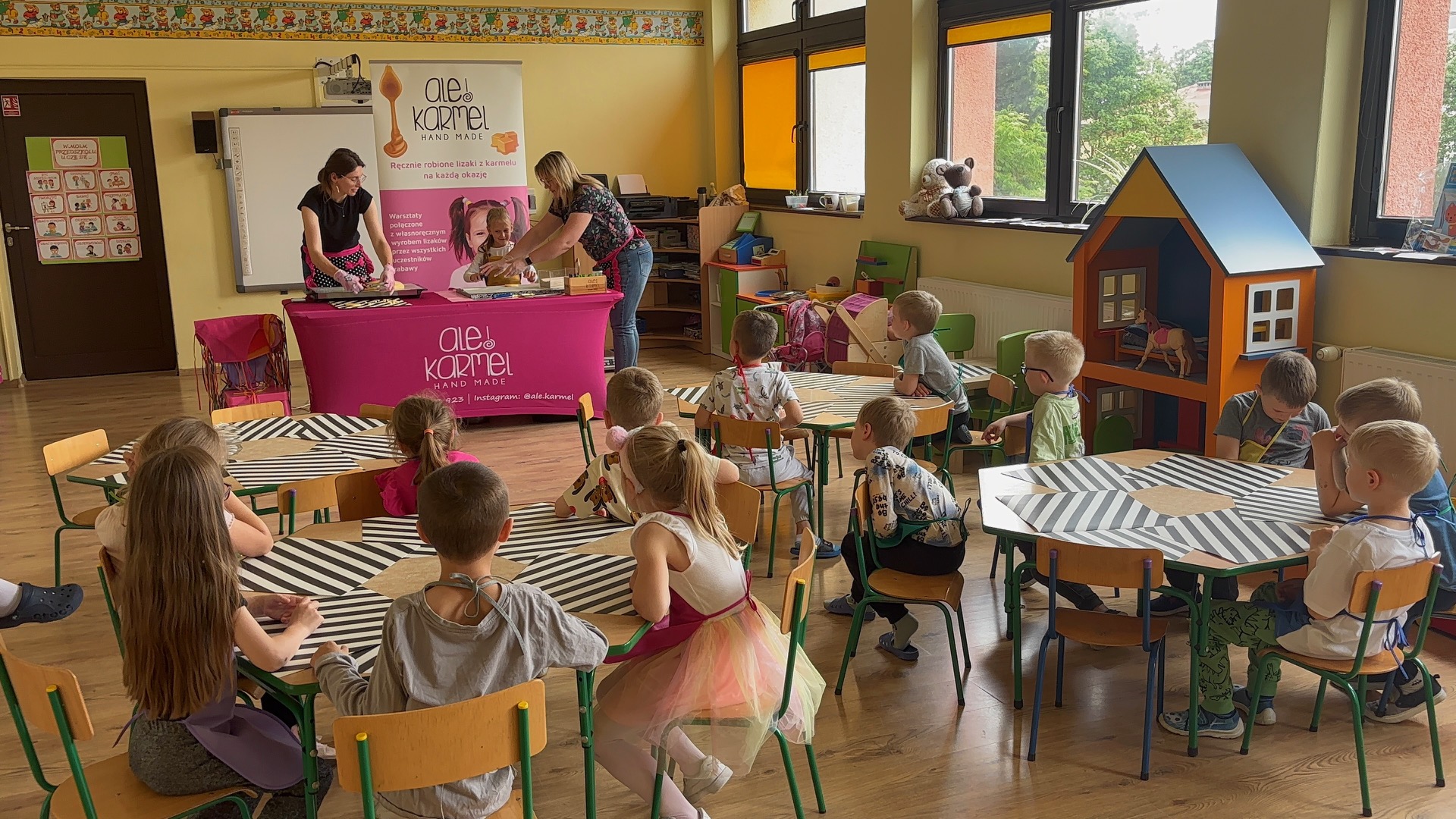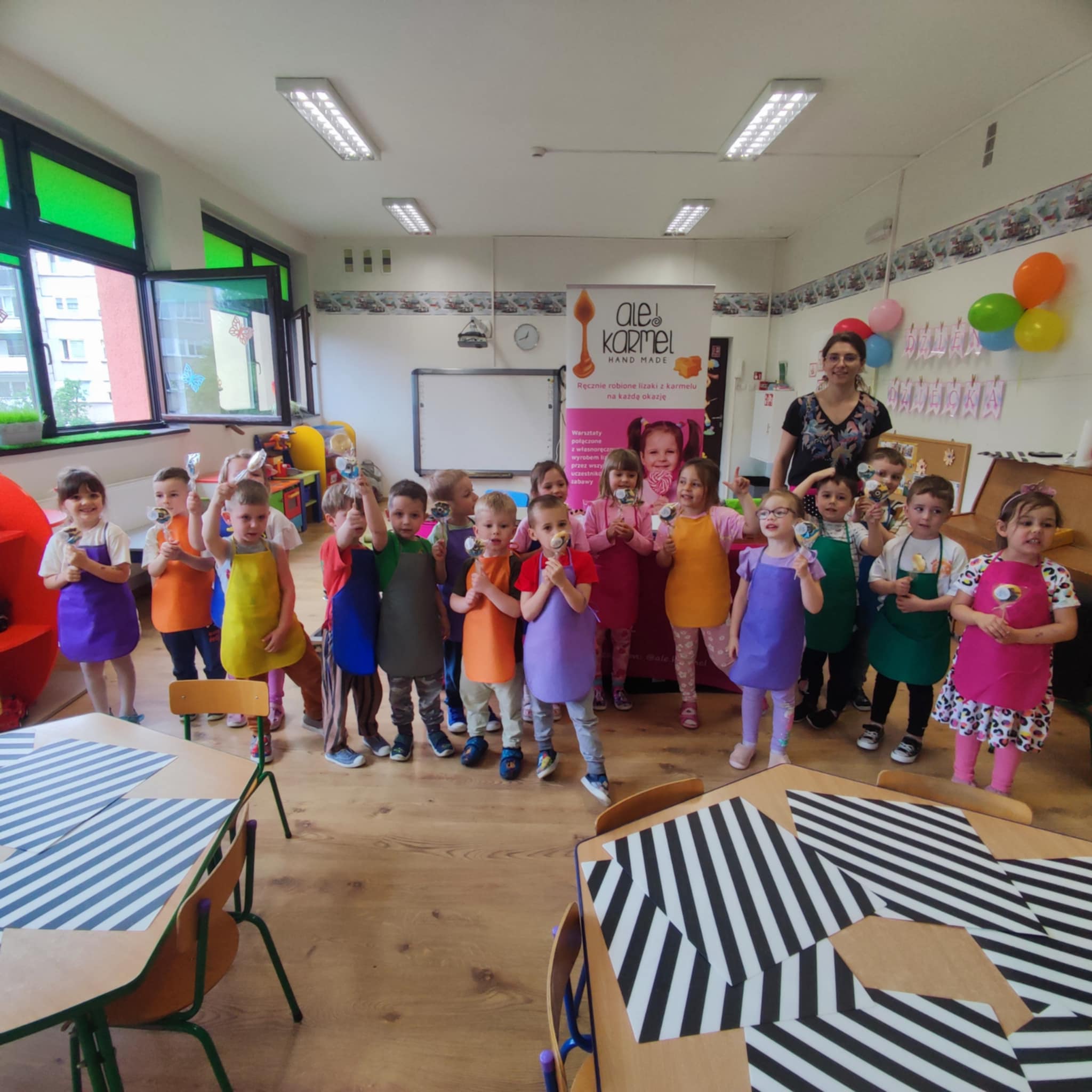 Z okazji Dnia Dziecka wszystkie przedszkolaki miały okazję uczestniczyć w niezwykłych warsztatach. Były to warsztaty robienia lizaków z firmą „Ale Karmel” oraz magiczno – chemiczne zabawy z Akademią Eksperymentów.