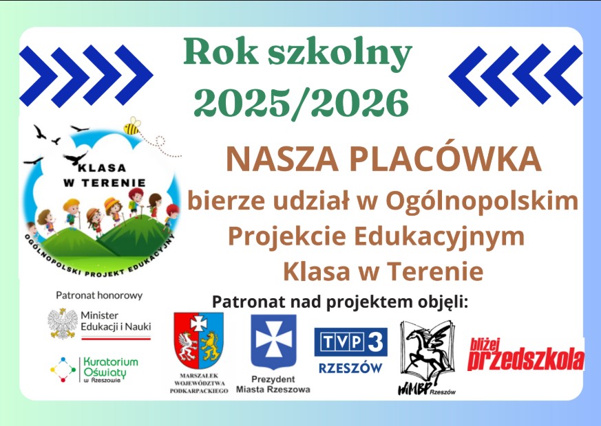 Wszystkie grupy z naszego przedszkola w roku szkolnym 2025/2026 przystępują do ogólnopolskiego projektu edukacyjnego „Klasa w terenie”.