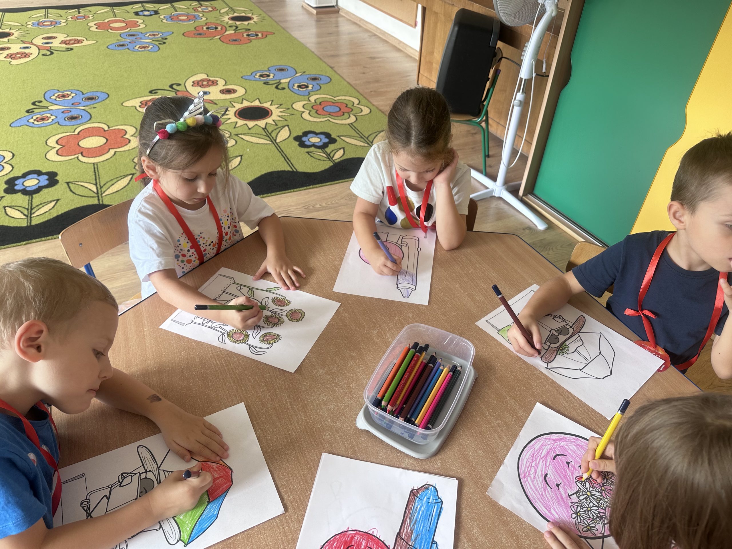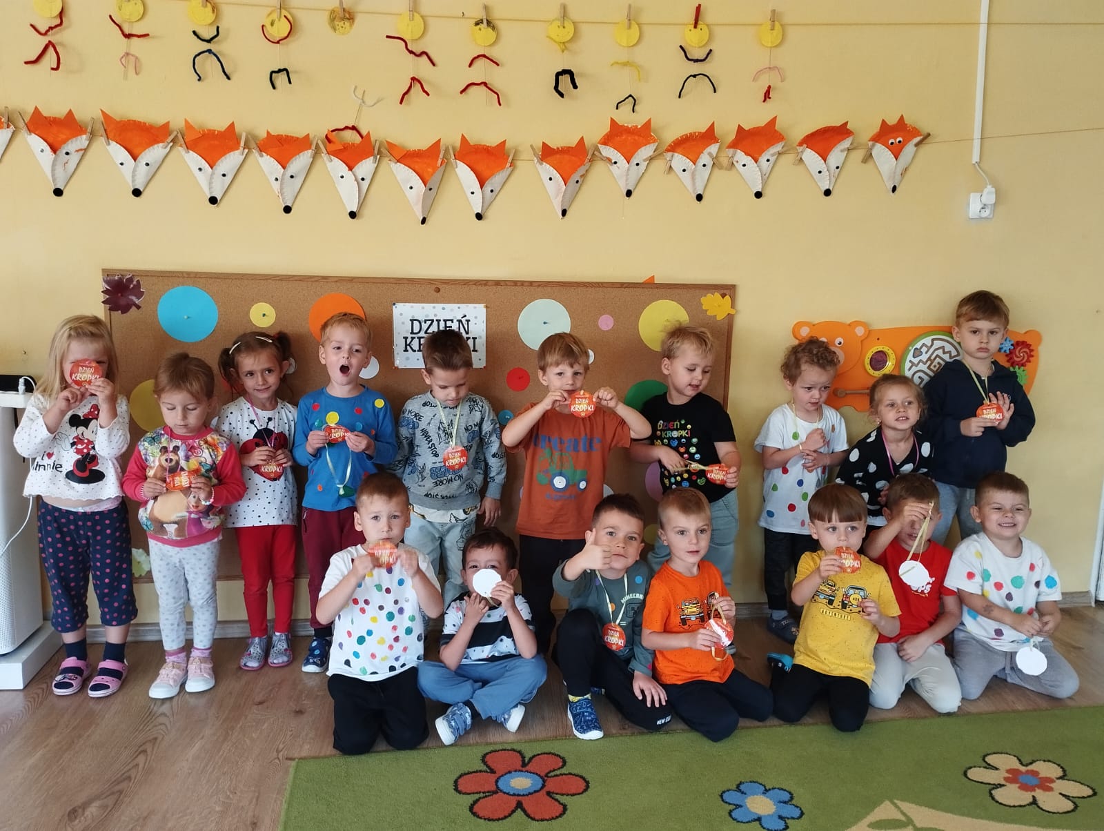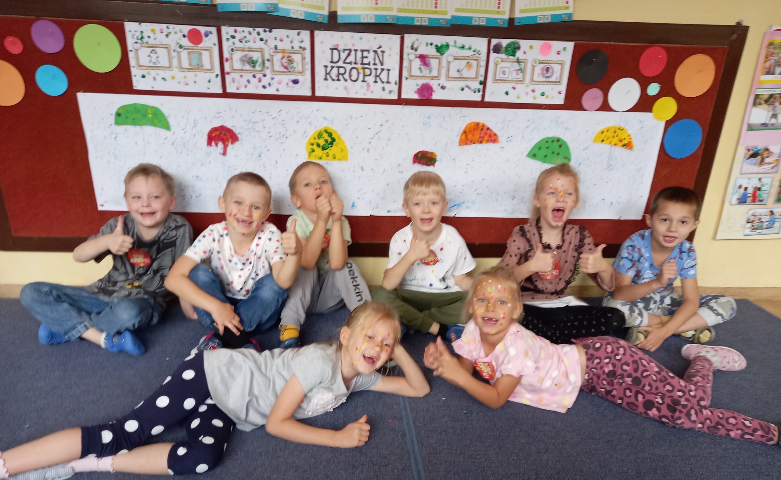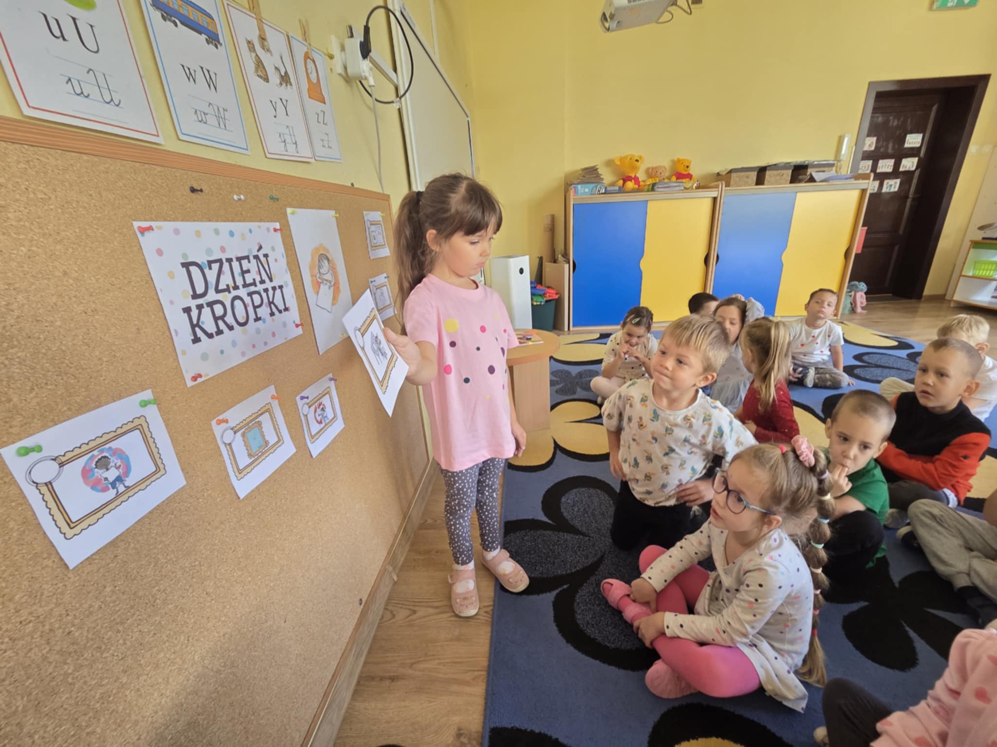 15 września w naszym przedszkolu wszystkie grupy świętowały Międzynarodowy Dzień Kropki – święto kreatywności, odwagi i wiary we własne możliwości. Tego dnia przedszkolaki przyszły ubrane w stroje ozdobione kolorowymi kropkami, a całe przedszkole wyglądało wyjątkowo radośnie i barwnie.Dzieci obejrzały film o małej Vashti – dziewczynce, która dzięki jednej małej kropce odkryła swój talent i odwagę, by tworzyć. Następnie każda grupa uczestniczyła w różnorodnych zabawach plastycznych, ruchowych i muzycznych inspirowanych motywem kropki. Powstały piękne, kolorowe prace – „kropkowe obrazy”, które ozdobiły nasze sale.Dzień Kropki był wspaniałą okazją do rozwijania dziecięcej wyobraźni, kreatywności oraz wzmacniania wiary we własne możliwości. Wspólna zabawa przyniosła wszystkim mnóstwo radości i uśmiechu!