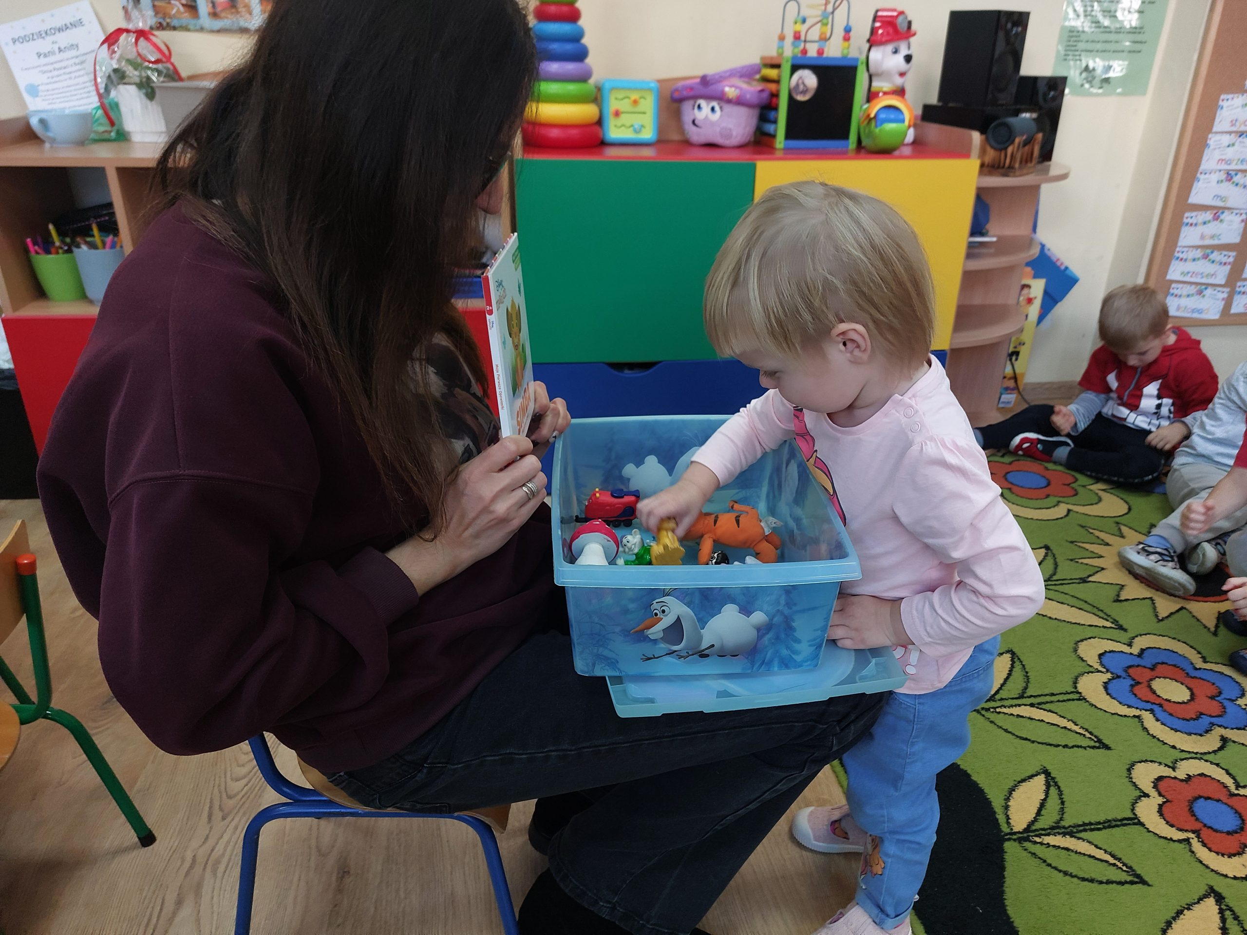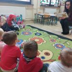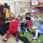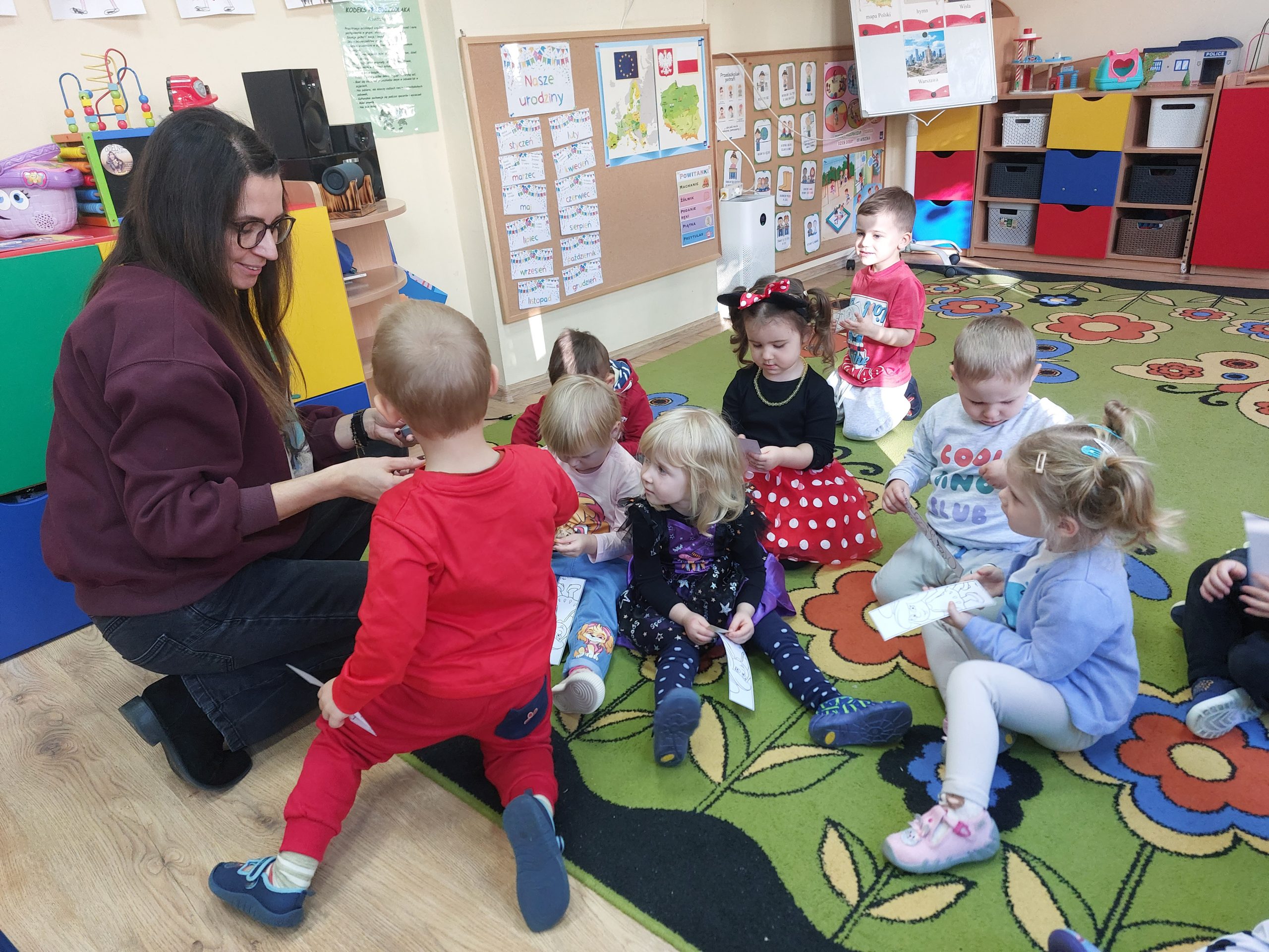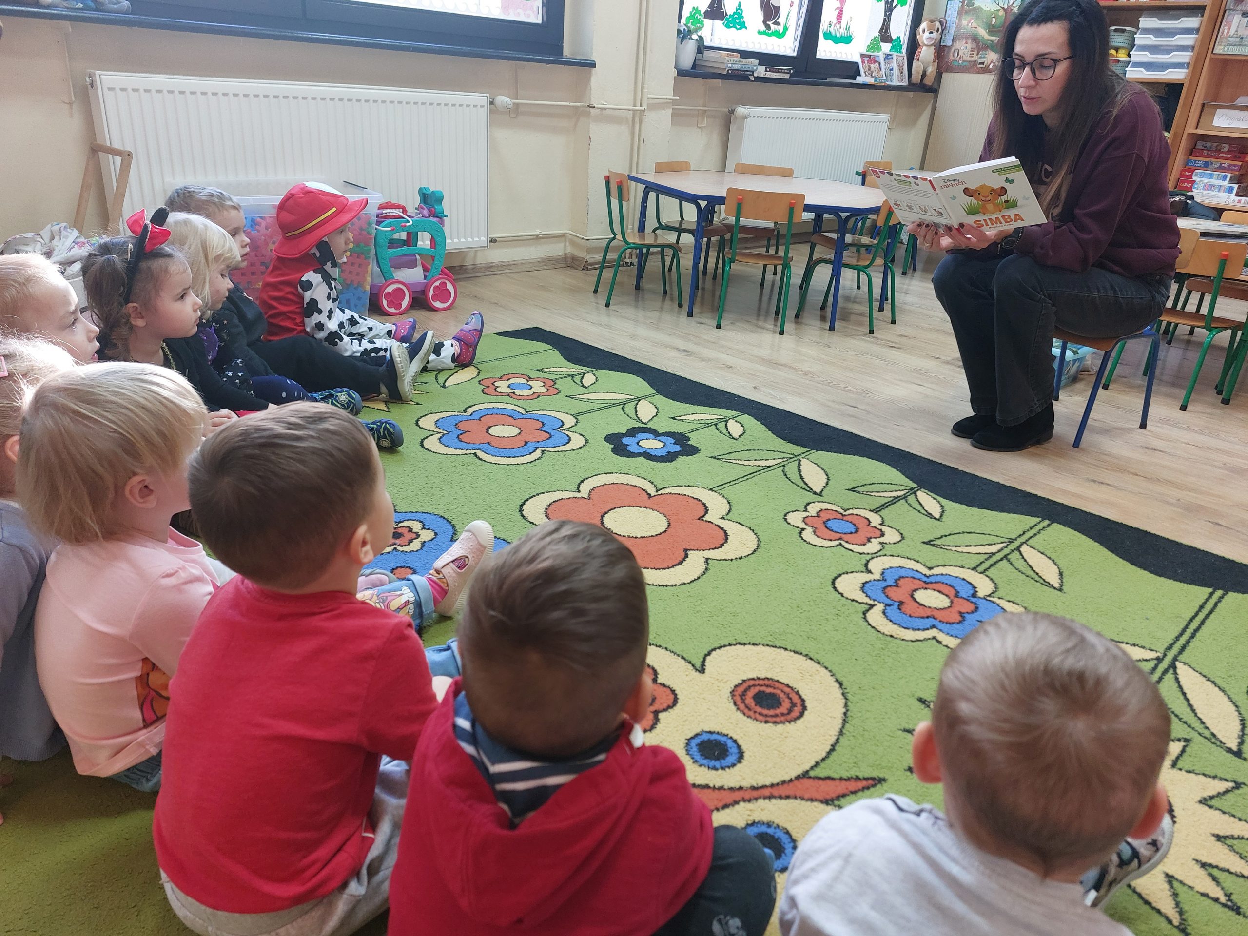 Z okazji tego święta na naszej sali pojawił się wyjątkowy gość – Pani Anita – bibliotekarka z biblioteki w Lamkach. Pani Anita przeczytała dzieciom książeczkę pt. „Simba. Magiczne słowa”.