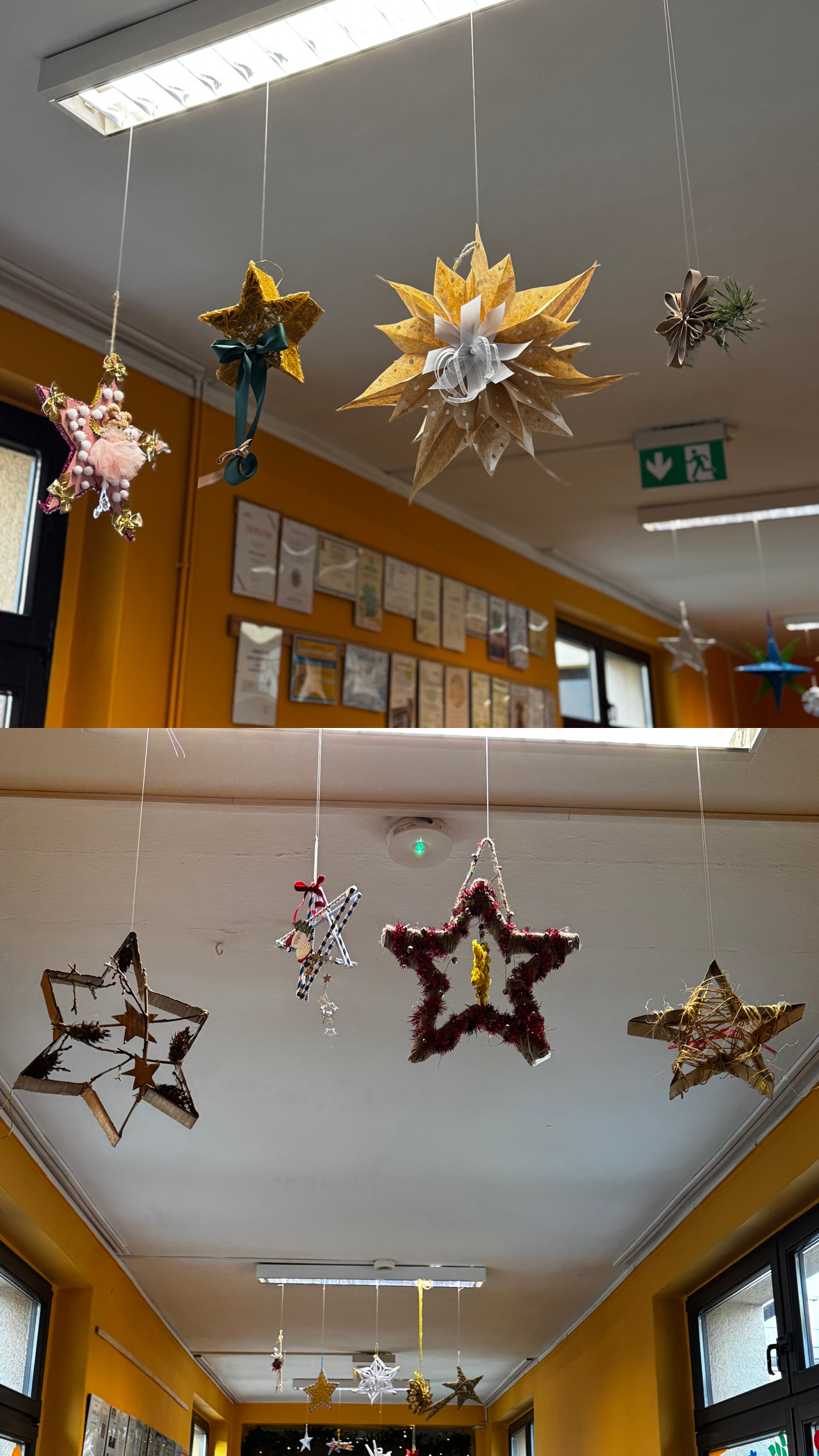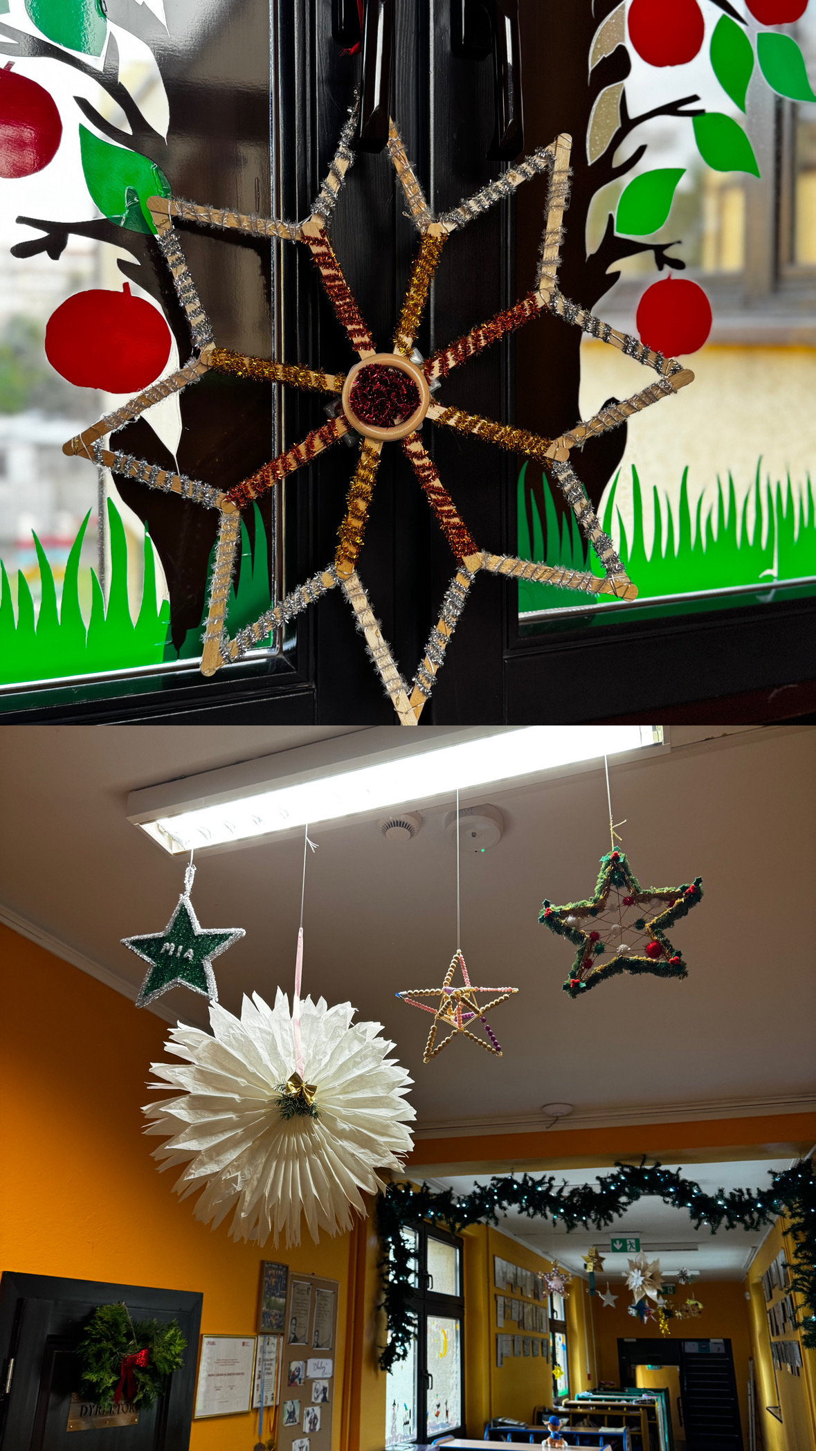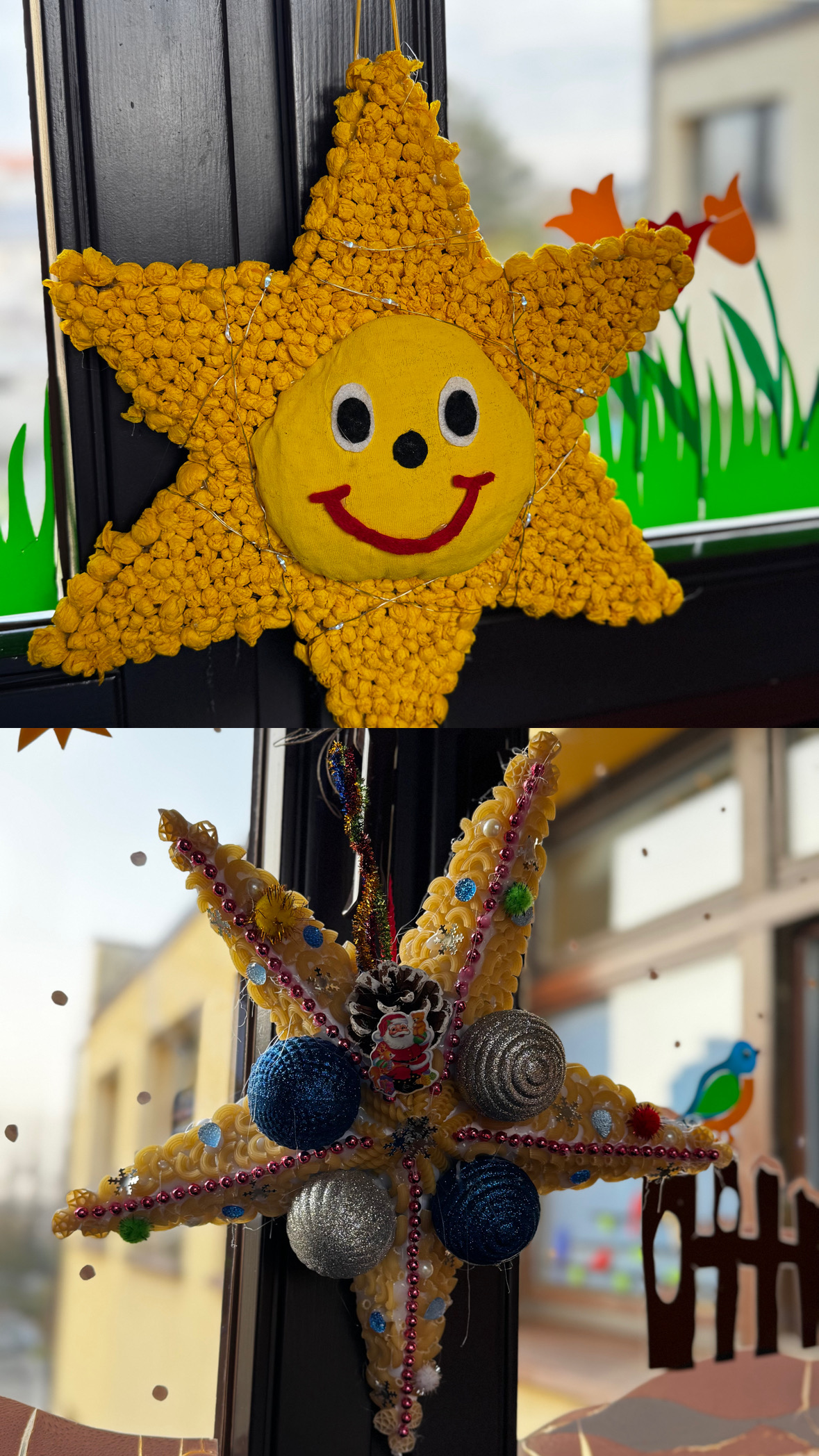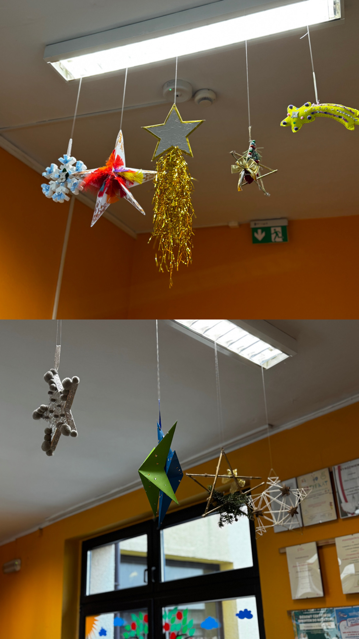 Wystawa gwiazd będzie widniała w przedszkolu aż do stycznia. Można ją podziwiać na zdjęciach oraz na korytarzach naszego przedszkola. Gwiazdki dodają świątecznego nastroju naszej placówce.