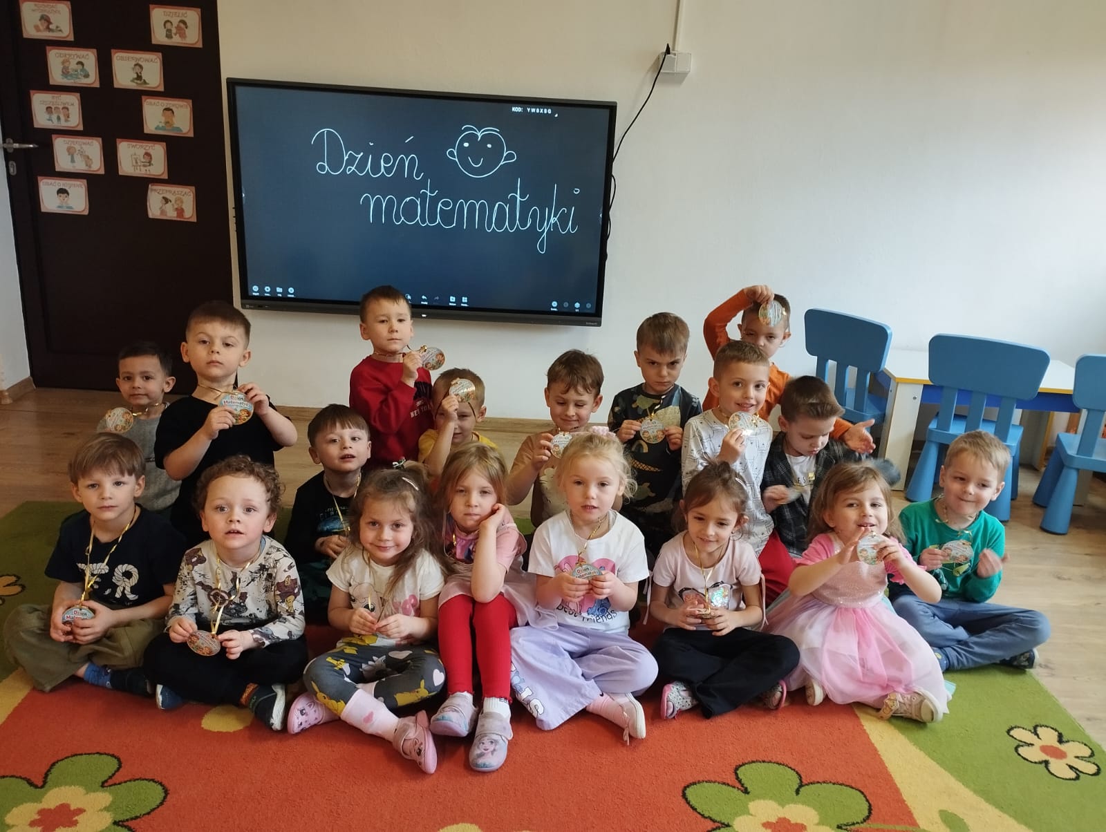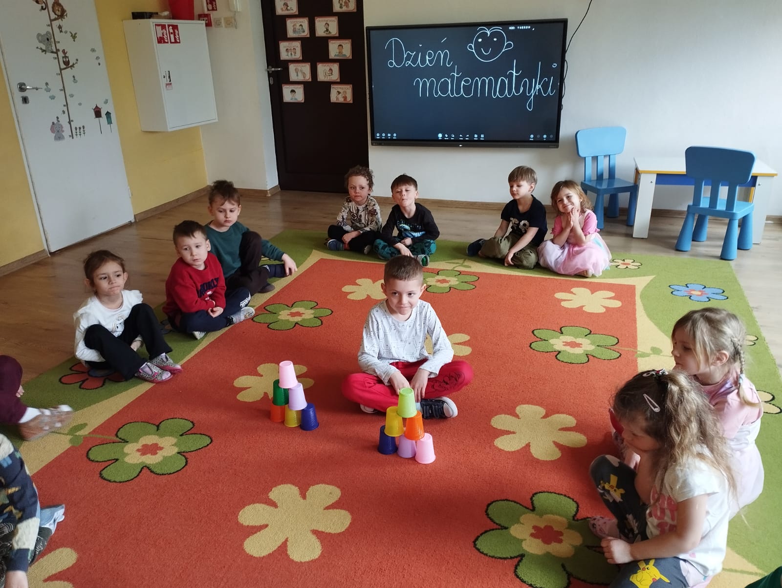 Dnia 12 marca obchodziliśmy w naszym przedszkolu Dzień Matematyki. W tym dniu dzieci uczestniczyły w różnych zabawach kształtujących kompetencje matematyczne. Przedszkolaki m.in rozpoznawały figury geometryczne, kolory, doskonaliły liczenie. Nie zabrakło też zabaw z kodowaniem oraz piosenek matematycznych. Dzień upłynął w wesołej atmosferze.