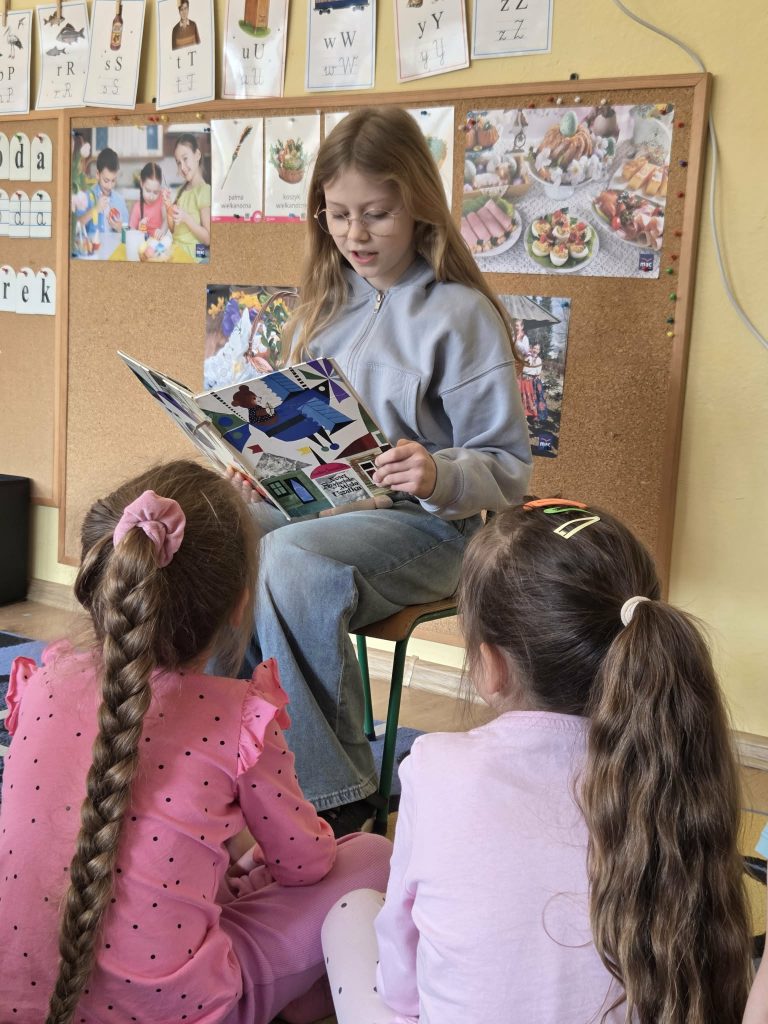 Dziś odwiedziła nas Tola, uczennica III klasy Szkoły Podstawowej, która jest absolwentką naszego przedszkola. Była to bardzo miła wizyta, Tola opowiedziała nam o życiu ucznia, wspominała wesołe historie z przedszkola i przeczytała Kangurkom bajeczkę.