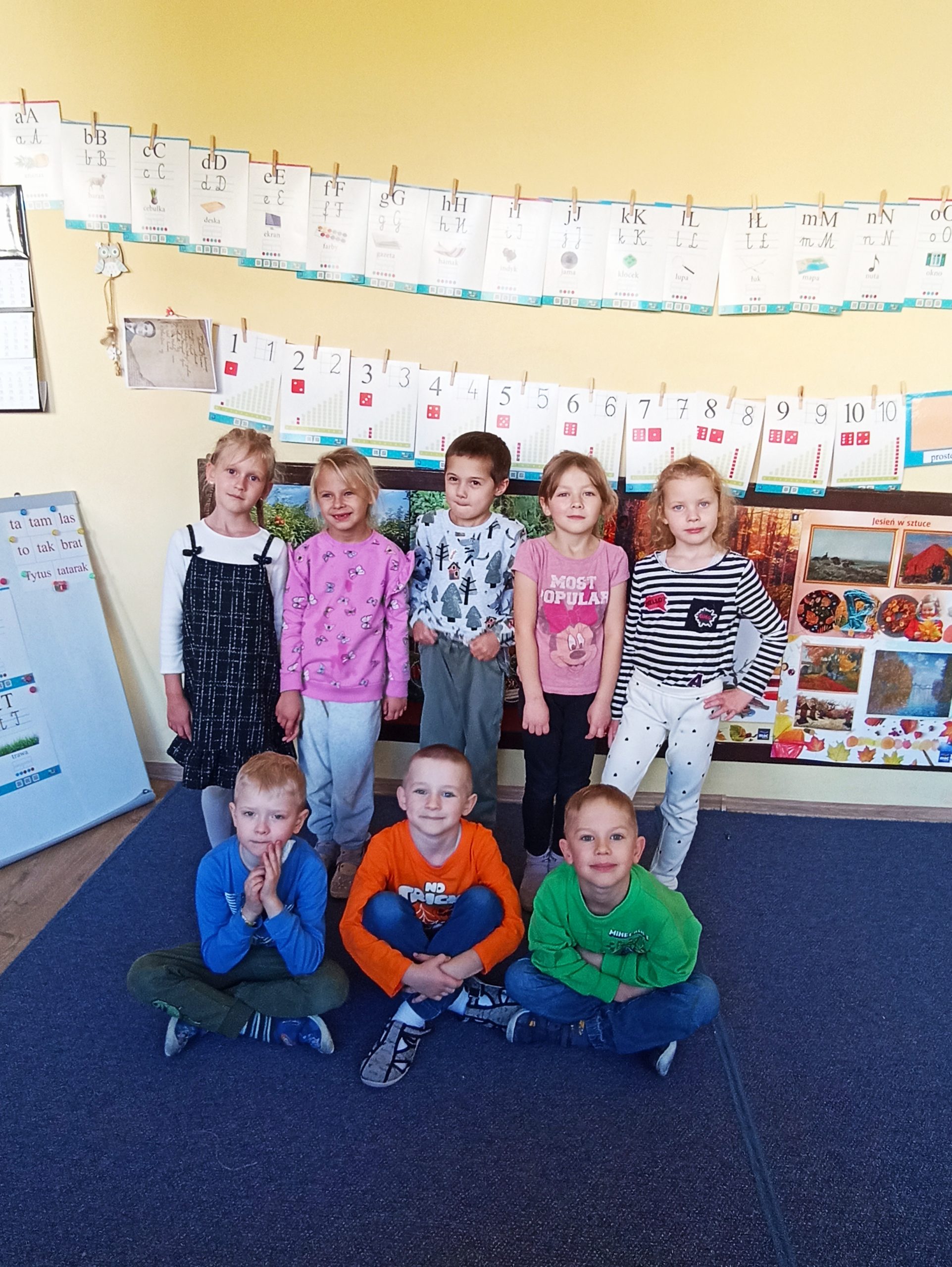 To my Sówki – jesteśmy już starszakami i nie boimy się nowych wyzwań. W naszej grupie jest 11 dzieci, w tym: 5 dziewczyn i 6 chłopaków. Ten rok będzie dla nas wielkim wyzwaniem, ponieważ wkraczamy w świat liter i cyfr, aby dobrze przygotować do roli pierwszoklasisty. W przedszkolu poszerzamy wiedzę, rozwijamy swoje umiejętności. Lubimy różnego rodzaju gry i zabawy ruchowe, organizowane w sali jak i na placu zabaw. Chętnie poznajemy otaczający nas świat, jesteśmy twórczymi, dociekliwymi i bardzo pomysłowymi przedszkolakami. Ponadto jesteśmy odważni i weseli. Wspólnie uczymy się zasad bezpieczeństwa i zgodnego współżycia w grupie. Staramy się być samodzielni i koleżeńscy.